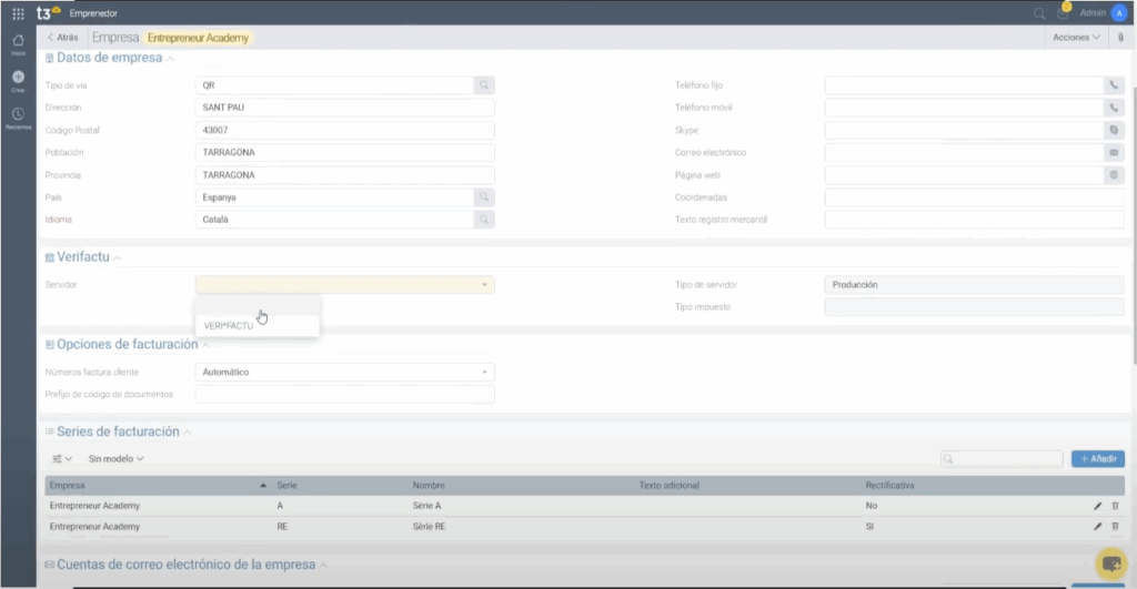 - Seleccionar si vols treballar amb Veri*Factu o No Veri*Factu.